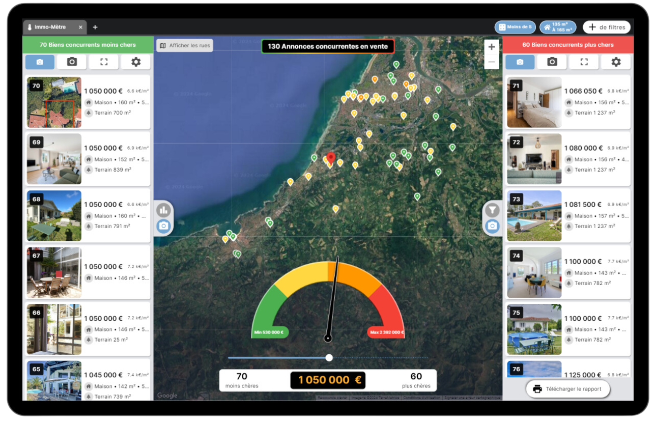 Filtres avancés pour affiner votre prospection par secteur, surface, ou type de bien